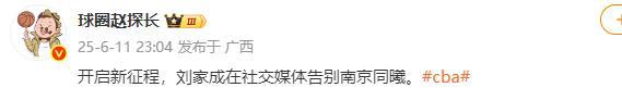 而刘家成本人深夜也自宣告别同曦,并发表了感言。他动情的说:两年的时间,爱上了南京这座城市,留下了美好而又难忘的回忆。感谢同曦集团陈广川董事长,十几年如一日对篮球炙热的爱,终将开花结果;感谢陈曦总,长风破浪终会有时。感谢我的兄弟们,我们一起创造了历史,路途上的风景远比终点来的更美好,谢谢你们带来的美好回忆。不说再见,我们来日再会❤️。